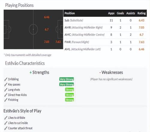 本赛季刚刚加盟切尔西的18岁巴西小将埃斯特旺很快赢得了蓝军球迷的认可,同时也成为了巴西国家队的常客。